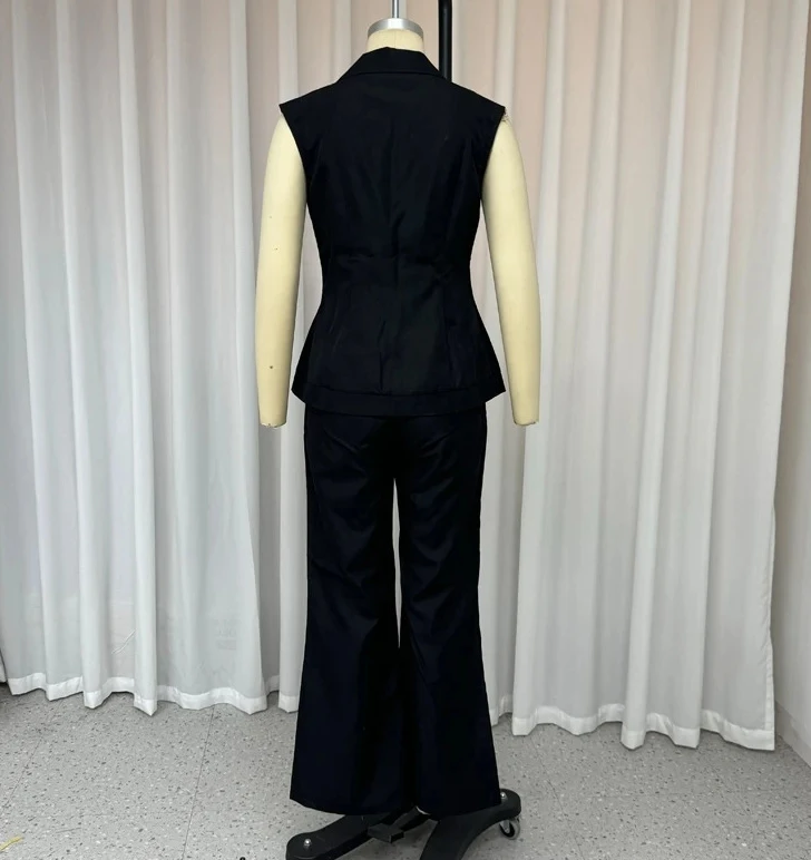 Two Pieces Set for Women Autumn 2024 New Fashion Casual Solid Daily Commuter Notched Collar Blazer Coat&Pocket Design Pants Set